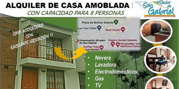 En casa Encanto Salento tendrás una estadía excepcional junto con tu familia, donde podrás disfrutar de la magia de Salento Quindío y valle del cocora. La casa goza de espacios con calor familiar y un balcón donde se puede apreciar un paisaje único de Salento. Se encuentra ubicada a tan solo 15 minutos de la plaza principal de Salento, ahí encontrarás rutas para cabalgata, rutas para montar en bicicleta, la casa del artesano y cuenta con una hermosa vista Casa y chalet Casa encanto espera a sus huéspedes por la dirección de Salento Cara 19#30n 65 e 4 de Salento a la distancia de 6 minutos del centro. Este es conveniente para descanso fuera de la ciudad, hoteles ecológicos fiestas. La casa tiene capacidad máxima hasta de 8 personas.
